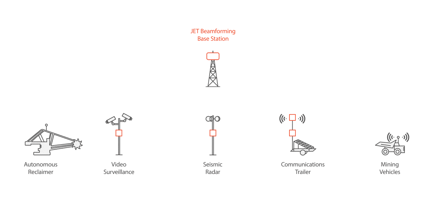 JET, la technologie beamforming révolutionnaire de RADWIN, produit une connectivité haut débit fiable et de haute performance qui répond à tous les besoins en connectivité de surface des exploitations minières.